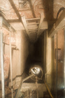 The tool Michael is demoing here is used to ‘hammer drill’ the holes for putting blasting rods into. They would place about 14 charges, wire them up, back away and set them off. The same man would then clear the rock into the trolley which would be taken up the shaft for processing. Today the miners work only one station, and contract work is no longer allowed – all in the name of safety.
