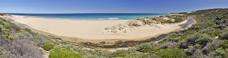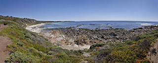 This time we headed south from Prevelly for about 10km. Again the walk was varied, this time I think even more enjoyable. We started on a tough uphill followed by a nice long flattish walk with wonderful views all around. That’s us at left – Kyle way out in front, us three girls and Mike in the back taking photos – as was often the case.
