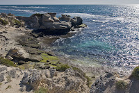 One of the reasons the walk is so interesting, is due to the underlying rock. There is a ridge which runs all the way down the coast from cape to cape. There is an underlying ancient granite bed, over which the limestone ‘young’ rock has been laid. So the exposed rock types alternate along the sandy beach and dunes which line the coast. It makes for interesting and varied terrain.