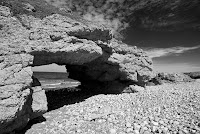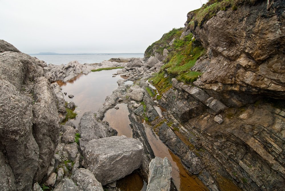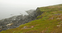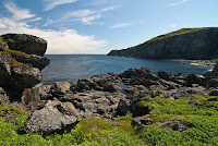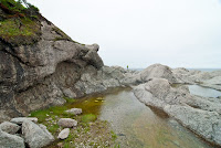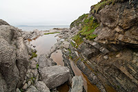 The Arches along the beach north of Gros Morne. They are remnants of the last glacial retreat. There were several hollows in the rocks and what was most interesting was that once they collapse, being primarily sedimentary rock they dissolve into sand. But all the other rocks around are large stones or rocks of granite from the glacial debris. Interesting landscape.