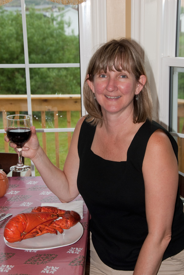 En route to our overnight we passed many scenic vistas and made a stop at the lobster pool. It was a large barn type structure with about 2 feet of water and the whole thing was full of lobsters. The local b’y who runs it buys them from the local fishers and keeps them alive by feeding them all summer till they run out. Lobster season closed a couple of weeks ago, and this supply will keep him going till August some time. We saw one that was huge – weighed in at 6.2 pounds! The 2 we bought were cooked and 2.2 lbs each. Quite a steal at $14 per. We had them for late lunch here at the Whitsha Inn with some wine / beer – quite decadent and very very good lobster.