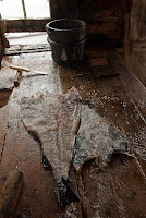 Then over to the splitter who took out the balloon bone – which is the back bone with a hollow allowing the fish to raise or lower in the water by filling it with air – and splayed the fish fully open for salting – very important that it was fully split.